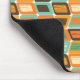 Este mouse pad tem um design moderno do século médio de retângulos arredondados inclinados para o lado com retângulos inclinados dentro feitos de linhas todas em cores da década de 70.