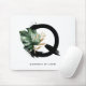 Letra personalizável Q monograma (Mousepad) com folha de monstera tropical de cor aquosa, folha de folha de folha de ouro falso e acentos de pincel de aquarela preta. Personalize este monograma tropical pelo seu nome ou outros detalhes. Esta letra de foz Q monograma mousepad será perfeita como presente. Outras letras estão disponíveis.