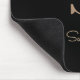 O mouse preto elegante apresenta um monograma botânico dourado no centro.