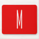 Mousepad Letra inicial Monograma Estilo moderno Branco verm