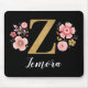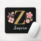 Um belo monograma floral cor-de-rosa, com monogramas femininos, com flores cor-de-rosa e uma letra Z de monograma falsa em ouro sobre fundo preto. Personalize o mouse pad adicionando seu nome abaixo do monograma. Faz um presente divertido para um amigo ou para uma dama de damas de honra. Projetado para você pelo Blackberry Boulevard.