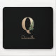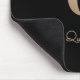 O mouse preto elegante apresenta um monograma botânico dourado no centro.