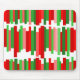 Este mouse pad tem um padrão natalício de linhas em vermelho e verde em comprimentos variados.
