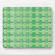 Este mouse pad tem um médio de século design de linhas verdes verticais com retângulos acima, repetidos sobre o design.