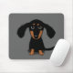 Cute Longhaired Black and Tan Dachshund Cartoon Dog with Long Fuzzy Ears and Eyes Looking Up. An adorable Doxie puppy dog looking very sweet and maybe a little bit guilty. A fun mousepad to keep you company during long work hours at the computer. This original wiener dog mousepad makes a great gift for sausage dog lovers. Visit Jenn’s Doodle World for even more weenie dog cartoons and cool Dachsie gifts.