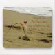 Uma vela na areia de uma praia com coração sobre ela e ondas oceânicas em direção a ela. Você pode personalizar/personalizar este produto.
