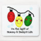 Três bolbos de árvore de Natal com olhos e um sorriso em vermelho, verde e amarelo e texto que diz "Eu sou a luz da Mamãe e da vida do Pai" em sacos de tote de férias, T-shirts, e outros itens para crianças!
