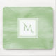 Um mousepad de mármore subtil simples do design na luz - esverdeie com um crachá moderno do quadrado branco a que você possa personalizar adicionando sua inicial monogrammed. Esta é parte da coleção de mármore subtil do monograma do verde de Nile.