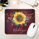 Este tapete de rato personalizado apresenta um design floral de cor d'água com um girassol, rosas de burguesia e folhagem com luzes de cordas. Personalize-o com um nome ou iniciais.