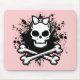 O crânio e os crossbones da mulher pirateiam o emblema, com parte superior do arco e revestimento protetor do splatter. Não um cutesy. Os t-shirt, suam, cartões, canecas, presentes.