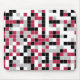 Este mouse pad apresenta um padrão geométrico multicolorido em Viva Magenta, preto, cinza e branco. Os quadrados são coloridos em ordem aleatória e você pode editar as cores na ferramenta Design.