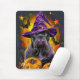 Abraçar o espírito do Dia das Bruxas com esta design encantadora que apresenta um cachorro fofo num chapéu de bruxa rodeado por abóboras entalhadas. Perfeito por adicionar um pouco de charme assustador às suas comemorações festivas.