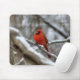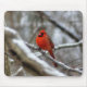 Um Cardeal vermelho brilhante adiciona uma pop de cor num dia de neve sonhador.