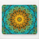 Estrela de incandescência no oceano, uma mandala abstrata bonita nas cores amarelas/laranja e azul. Sensação uplifted e relaxada olhando esta parte bonita, original da arte.