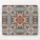 Esta design de mandala simétrica apresenta uma paleta de cores e textura de tons de terra mudos.