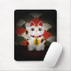 Um gato afortunado japonês, ilustrado por Megan Anderson. O kanji na moeda representa a "longevidade".