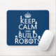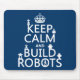 Isto lê "mantem a calma e constrói robôs" e há uns lotes das silhuetas do robô que sentam-se nas letras. É um grande design para qualquer um que ama a ciência e os robôs e a ficção científica. Este design tem sido caracterizado igualmente em alguns dos filmes os mais grandes do robô nos últimos anos.