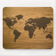 Um woodgrain textured o fundo com uma folha de prova da ilustração do mapa do mundo.