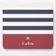 As listras horizontais largas modernas modelam o mousepad nos azuis marinhos e no vermelho. Personalize adicionando seu nome abaixo do logotipo retro chique da margarida.