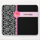 Um mousepad da forma das mulheres à moda com um teste padrão preto e branco na moda do girafa embellished com uma flor cor-de-rosa feminino da margarida. Personalize adicionando seu nome a este design moderno. Aperfeiçoe para o fashionista chique.