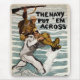 Poster vintage mostrando um marinheiro percorrendo enquanto carregar um soldado no ombro. O Marinho os colocou no serviço de viagem e treinamento, com idades entre 17 e 35 anos