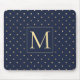 Mousepad elegante e na moda com design marinho azul e bolinhas dourado, personalizado com seu monograma.