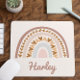 Mousepad Marrom rosa Boho Arco-Íris Nome Personalizado Mono