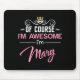 Claro que sou incrível, sou a Mary - em letras coloridas brancas mistas, casuais e cor-de-rosa, cursivas, com embelezamentos de rolagem e coroa ouro.