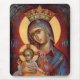 Imagem vítrea de Maria segurando Jesus bebê em seus braços. Ícone da Igreja Católica Oriental.