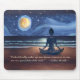 Yoga Malhação Studio / Instrutor de Meditação / Treinador Pessoal / Treinador de Vida / Healer / Reiki Master / Massage Therapy cita Mouses pads. "Quando você encontra paz dentro de si mesmo, você se torna o tipo de pessoa que pode viver em paz com os outros." Mulher Pacífica Meditando Silhouette à Noite Sob o Fantasma Céu Luar na Praia Calm Ocean.