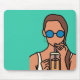 Um gráfico colorido e engraçado de um chá de bolhas de bebendo de menina adolescente. Design de cor azul-clara, legal e moderna.