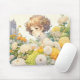 Flores brancas e amarelas de aquarela com uma anime bonito sentada a dentro. Ai art.