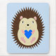 Este mousepad incrível apresenta uma imagem de arte digital de um adorável ouriço bebê marrom espinhoso com pálpebras marrons e um grande sorriso, segurando um coração azul. Um ótimo design para celebrar um menino bebê.