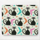 Mousepad Mid Century Black Atomic Cats with Boomerangs