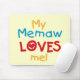 Meu Memaw me ama T-shirts, fatos-chave, cartas, adesivos, sacos para cartazes, ímanes, adesivos e outros Dons me ama, e me ama com um design de texto azul, vermelho e amarelo.