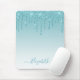 O moderno Elegante Fashionable e Trendy Aqua Blue Glitter Mouse Pad personalizado com seu nome. Script de na moda. Coloque brilho com faíscas.