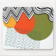 Este mouse pad tem um design moderno de meados do século de linhas curvas e em zigue-zague em preto, círculos em amarelo, laranja e verde, e um retângulo feito de linhas tracejadas em azul-turquesa. Se você quiser o mesmo design com cores diferentes, me envie uma mensagem.