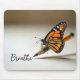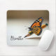 A vibrant monarch butterfly gracefully resting on a pencil, magically suspended above a blank sheet of paper with one inspiring word.
