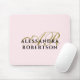 Stylish elegant refined mousepad , customizable personalizable with monogram, initial letters and name. Clean chic pastel light candy pink background, elegant gold calligraphy script handwritten initial letters, and classy black typography for the name. Beautiful and timeless, for you or as a thoughtful custom fashionable useful gift for her.. Great computer or laptop accessory, for home, home office or business office space. Very affordable, a gift under 15 dollars for her, suitable for many occasions and celebrations.