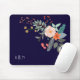 Um spray colorido de flores botânicas gráficas decora esse bocal e pode ser personalizado com três iniciais de monograma. O fundo é um marinho azul rico.