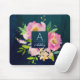 PINK BLUSH & MARINHO Floral Monograma Mouse Pad - Um presente bonito que certamente será apreciado. Este design de mouse chic apresenta um fundo de aquarela de azul e turquesa marinho maravilhosa, sobre o qual se senta um belo buquê rosa e branco de rosas de aquarelas e flores, sobreposto com uma caixa de texto correspondente a marinho/taruga profunda, com o nome e a inicial do monograma numa combinação sofisticada de sans serif e tipografia de scripts. Esta design é facilmente personalizada e faz um presente de excelente para ela, apenas adicione o nome e a inicial.