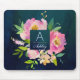 Mousepad Monograma de Buquê Floral de PINK e MARINHO