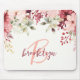 Este elegante mousepad personalizado apresenta um monograma e primeiro nome em rosa moderno e script bordô. Um arranjo de aquarela de flores rosa bege e bordô e folhagens adorna a borda superior.