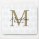 Mousepad Monograma de Leaf Leaf Leaf Dourado branco minimal