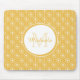 Um módulo de padrão de monograma na moda com um círculo branco e amarelo giro com pequenos corações bonitos. Personalize adicionando seu nome e monograma inicial à estrutura do círculo de tendência.