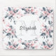 Mousepad Monograma de Padrão Flor de Aquarela Rosa e Cinza