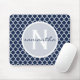 Mousepad Monograma de Quatrefoil dos azuis marinhos e do
