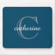 Mousepad Monograma de Script Azul do Marinho Clássico