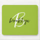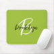 Este elegante mouse personalizado apresenta um monograma e primeiro nome em um script preto e branco moderno em um fundo de verde limão de tendência.