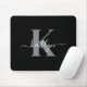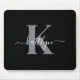Mousepad Monograma de Script de Cinza Negra Moderna